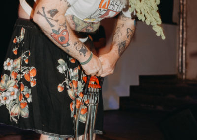 Eine Vernissage zu bekochen ist unkonventionell, aber schön, wenn viele der ausstellenden Künstler und Künstlerinnen beim Aufbau anwesend sind. „Kon“ schufen wir eine Ausstellung, die knapp 120 Junge, und Junggebliebene Menschen zur Vernissage ins Kesselhaus zog. Ein bisschen „.com“ war bereits bei der Vernissage zu spüren. Es gab digitale Kunst – die Florian vor programmierende Herausforderungen stellte: zwei Videos von Johanna Brunner sollten exakt zeitgleich starten, einfach wenn man den Strom anschaltet. Klappt jetzt – und lädt von nun an ein sich 19:45 Minuten mit Johanna Brunner auseinanderzusetzen, wie sie sich in Wir werden mehr als eure Häuser erben auseinandersetzt. Der Sound der Installation Zimouns sollte beeindrucken, was Flo und Jakob zum 12-stündigen Aufenthalt in einem dunklen schmalen Raum bewegte. Eine ganze Gruppe bewegte sich hinter David her, als dieser durch die Ausstellung führte. Ich freue mich über die Sätze „Ich bin gekommen, weil ich beeindruckt bin wessen Kunst ihr hier ausstellt!“ und „Ich komme aus Bosnien, meine Eltern leben in einer sogenannten Mischehe und es freut mich so sehr, dass ihr hier den noch immer (nach)wirkenden Prozess des Jugoslawienkriegs in der Arbeit von Smirna Kulenovic behandelt.“ Danke für die Gespräche, die dazu führten, dass bereits das komplette Oberladara der fränkischen Brauerei Ott von Marian und Flo bewegt wurde um gekühlt zu sein und sich in die Kehlen der Besucher*innen bewegen zu können. Bewegung in der Rezeption war auch zu spüren: „Wie stellt man eigentlich richtige Fragen zu einem Kunstwerk von Christian Schreiber oder Jeremy Wegscheider?“ Einfach Franz fragen: es entsteht auch ohne, dass neben einem Hitler-Gartenzwerg Ottmar Hörls „Ottmar Hörl Poisoned – Kunststoff 41x17x19“ steht ein Sinn, Entschuldigung Kon-zept in den ausgestellten Werken.